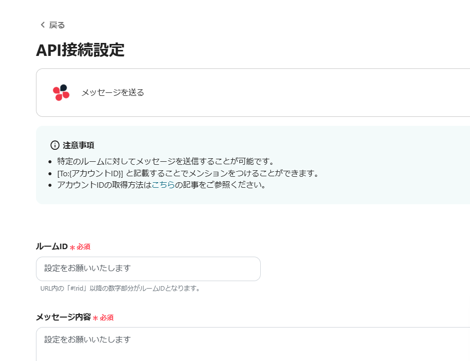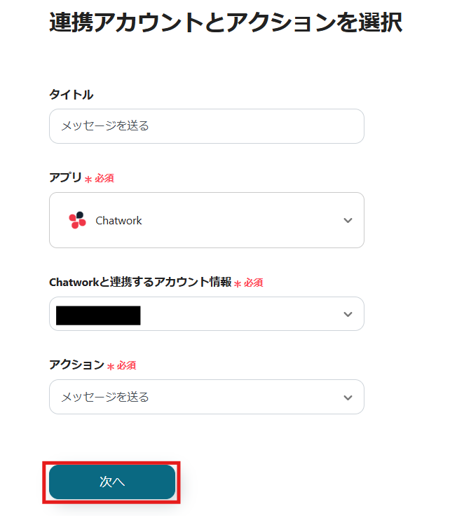 同様にChatworkを選択できたら、使用するアカウントで設定を行ってください。
