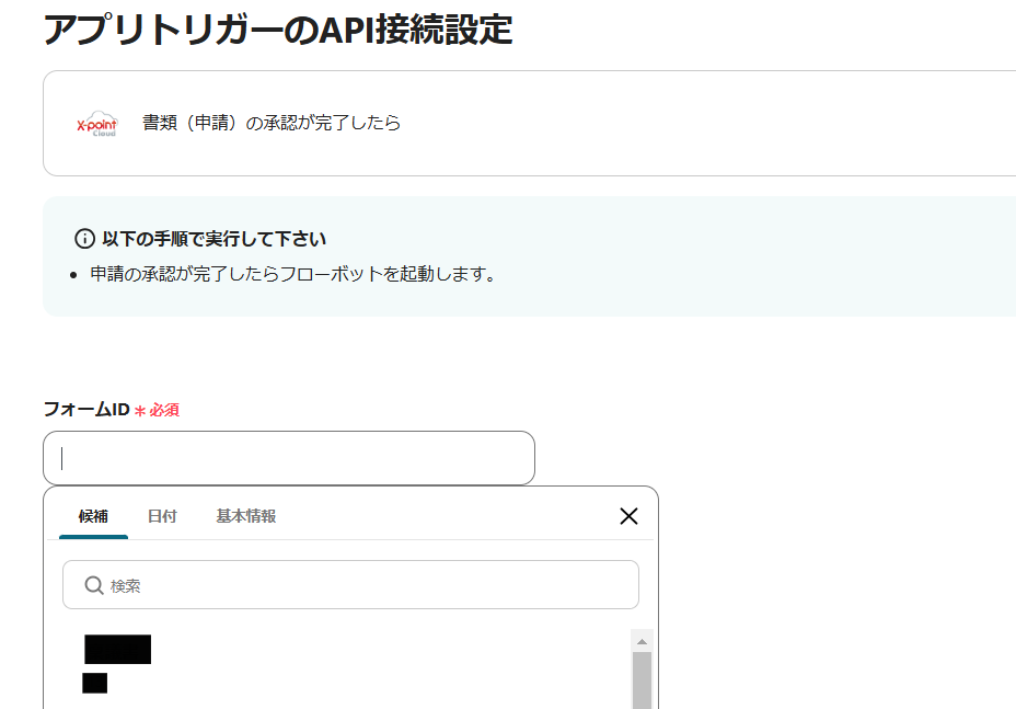 フォームIDはアプリ登録ができていれば候補から選択できます。