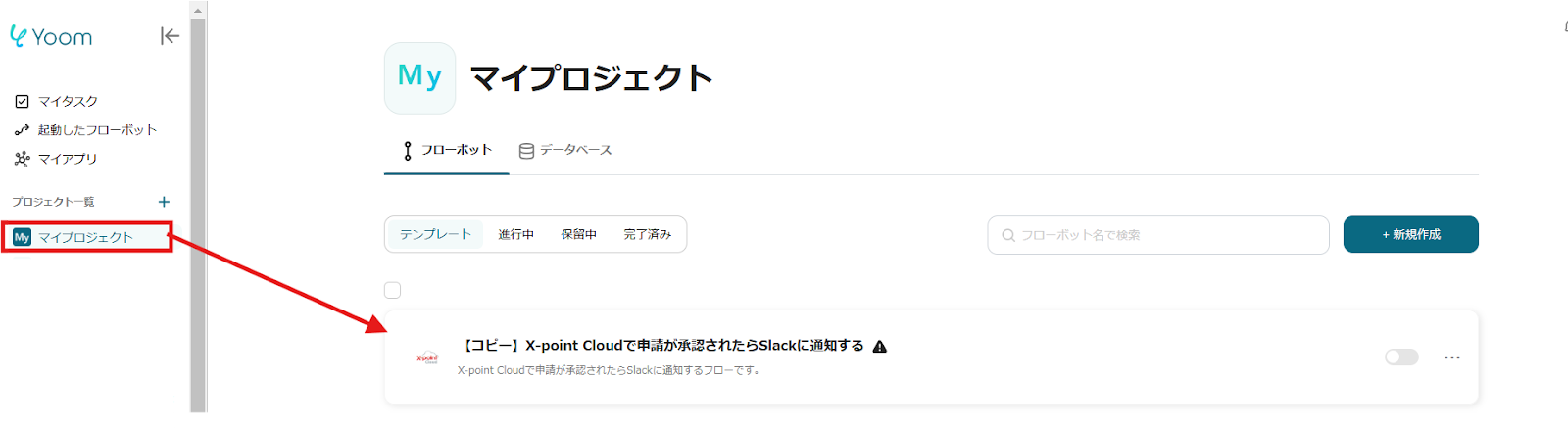 ここからは、Yoomのテンプレート【X-point Cloudで申請が承認されたらSlackに通知する】という連携フローを使って設定をしていきます。