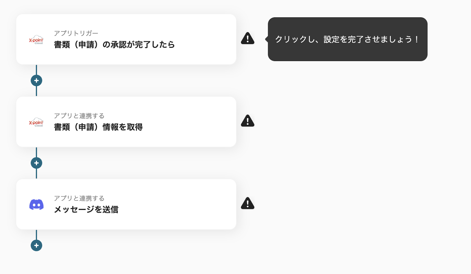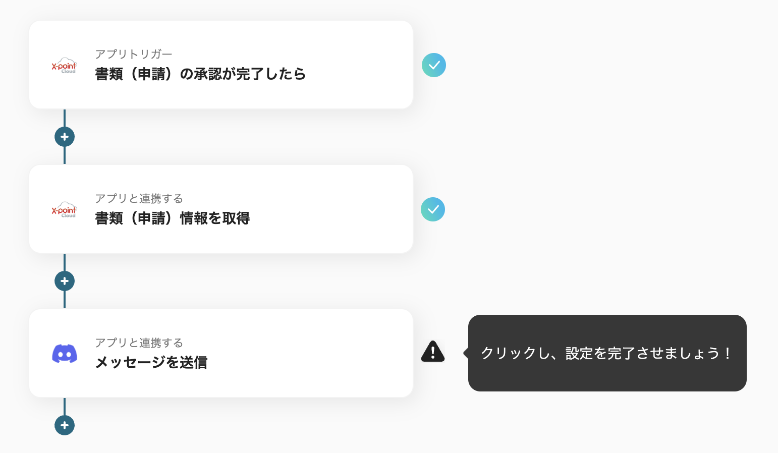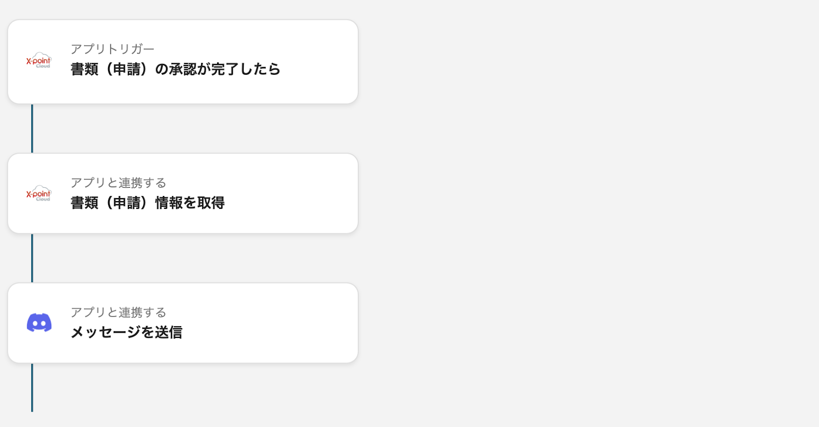 Yoomを活用してX-point CloudとDiscordを連携することで、X-point Cloudで申請を承認した後、詳細情報をDiscordに自動で通知します。
