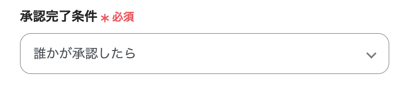 承認者を複数人に設定していて、そのうちの誰かが承認すれば承認完了とする場合は、こちらを選択します。