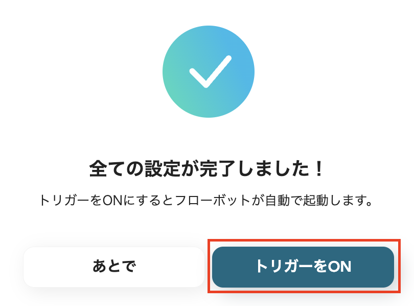 これで全ての設定が完了しました!トリガーを「ON」にして、動作確認をしましょう。