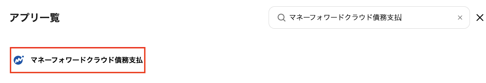 検索窓にマネーフォワード クラウド債務支払と入力し、表示された候補から選択します。