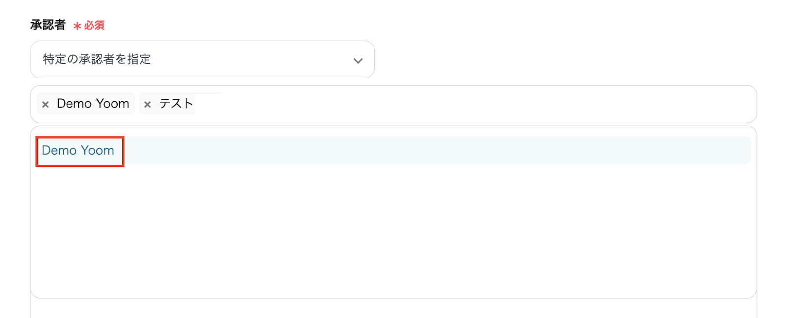 Yoomにユーザー登録しているチームメンバーで、承認者を指定したい場合は、こちらを選択します。候補が表示されるので、候補から選択しましょう。