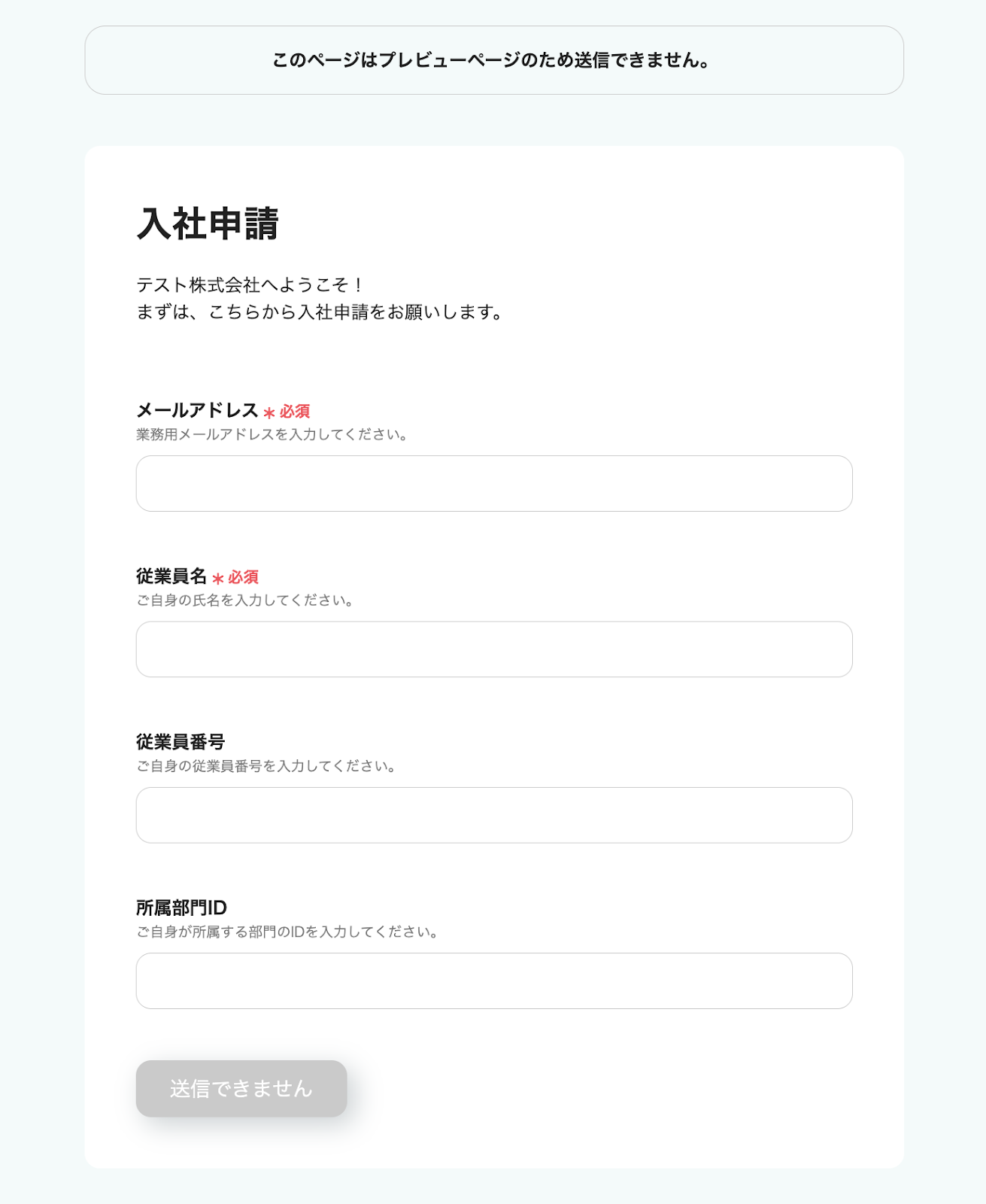 入社申請フォームの作成画面が表示されるので、申請に必要な項目を設定してください。