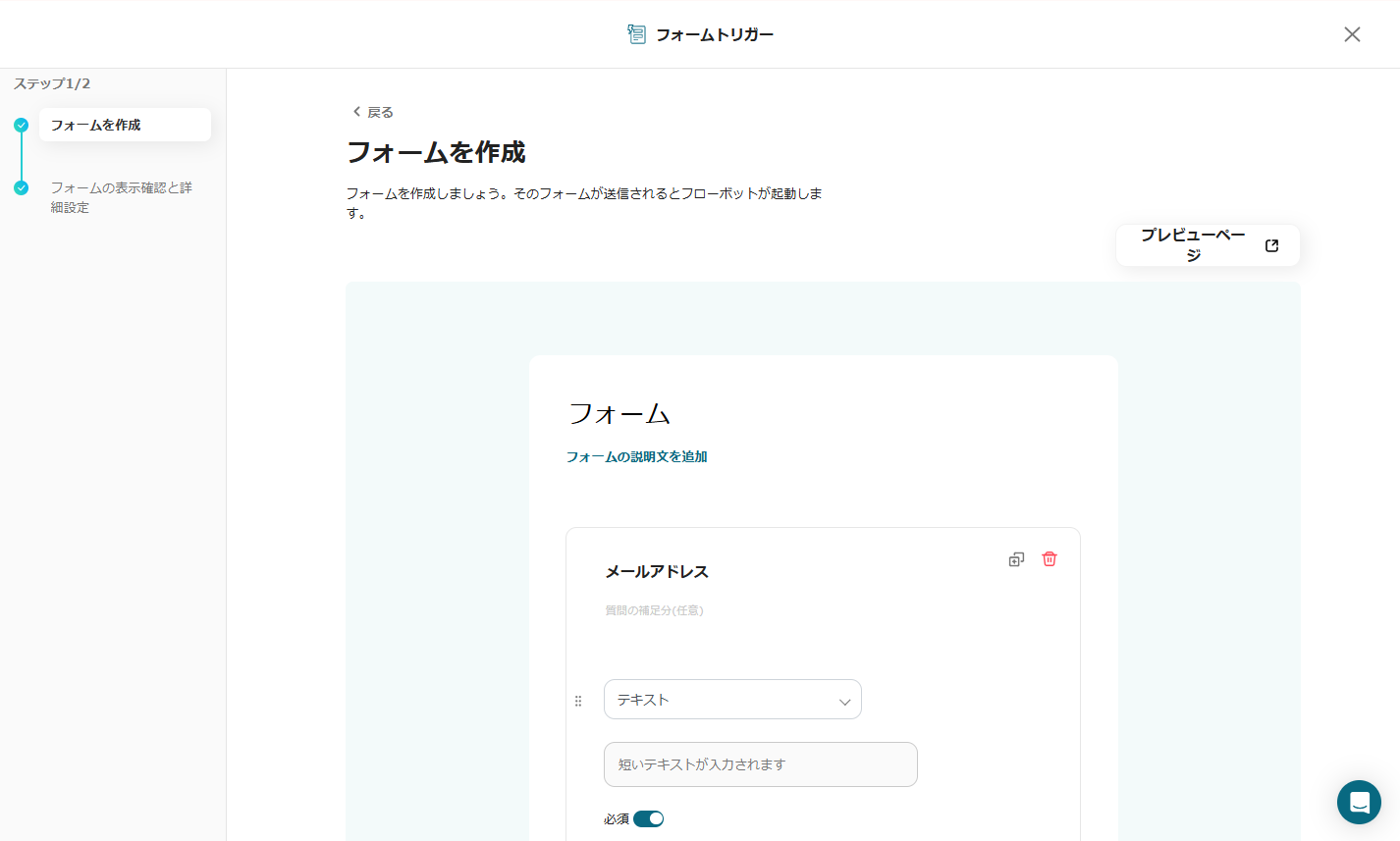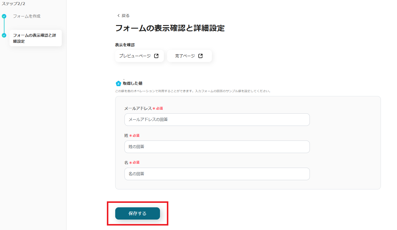 この値を使って後ほどの操作でテストを行うことができますので、実際に回答される内容に近いデモ値を入れておいてください。