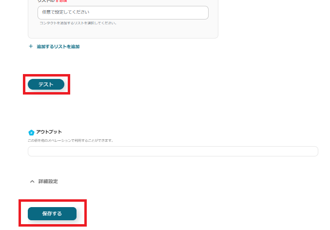 テスト成功後ページ下部の「保存する」をクリックしましょう。