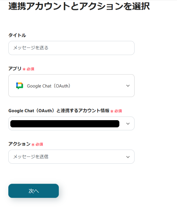 アカウント情報を確認して必要であればタイトルを修正し、次に進んで送信するメッセージ内容を設定します。