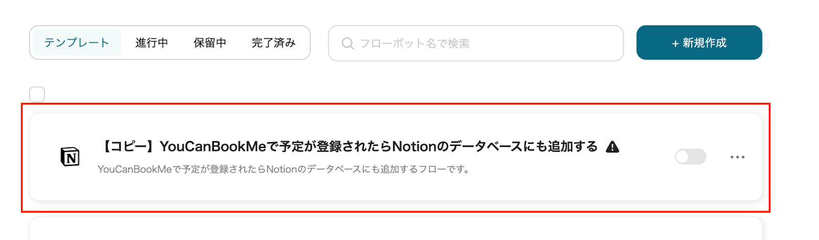 では、「YouCanBookMeで予定が登録されたらNotionのデータベースにも追加する」のテンプレートを使ったフローボットを作成していきましょう。