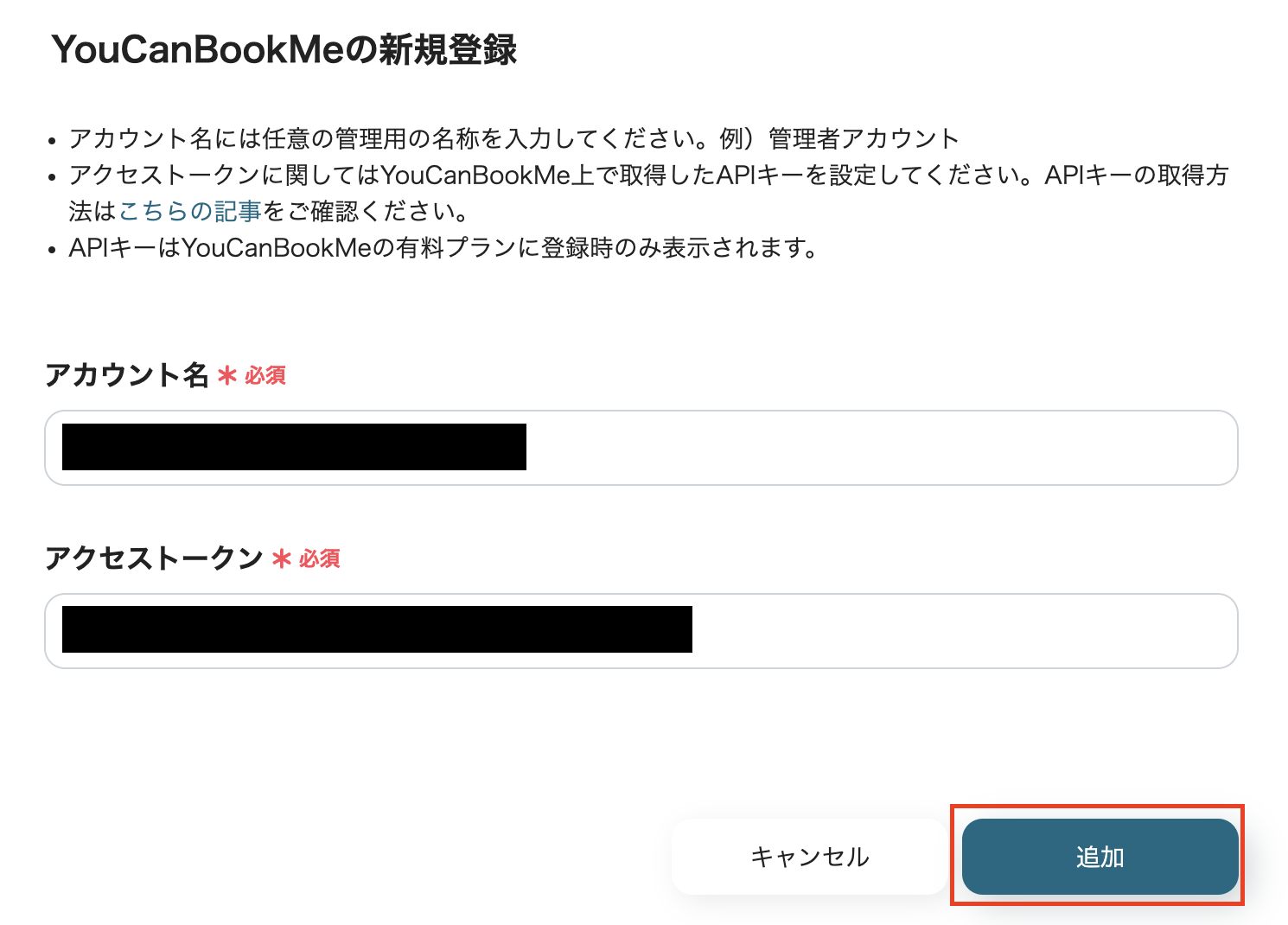 アクセストークンはYouCanBookMe上で取得したAPIキーを設定してください。