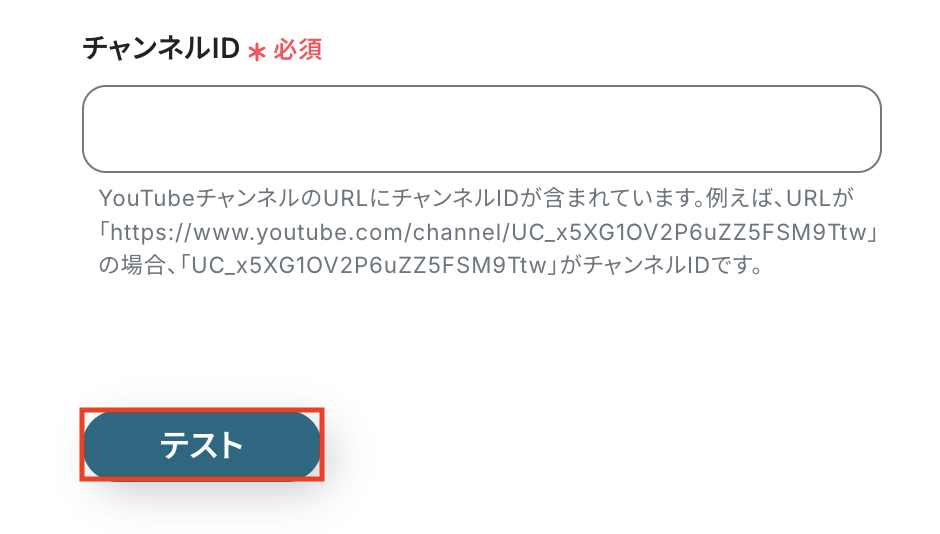 入力が完了したら、設定内容とトリガーの動作を確認するため「テスト」をクリックします。