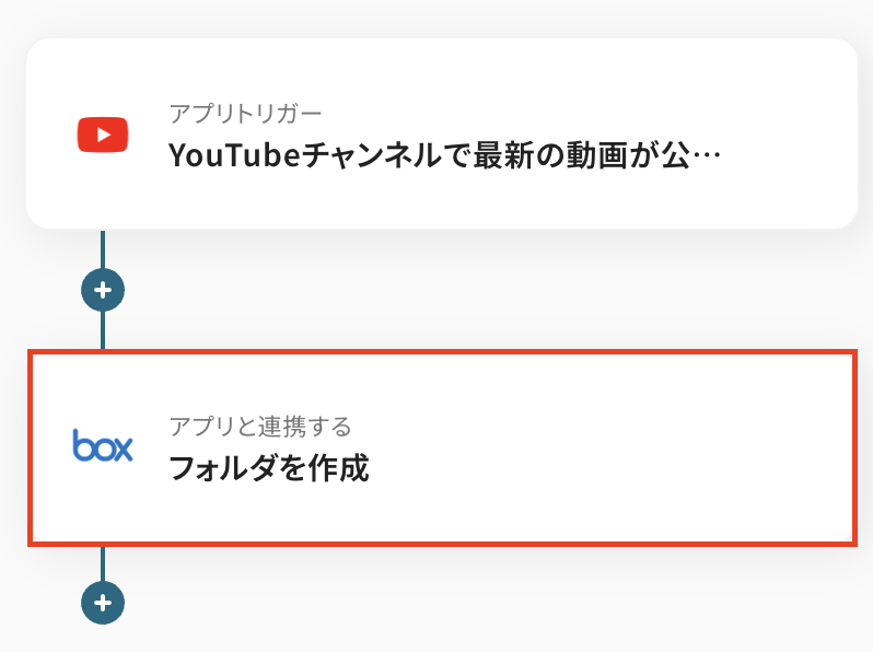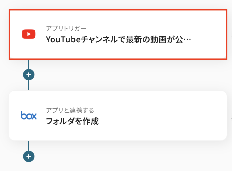 このワークフローを活用すれば、指定したYouTubeチャンネルの更新を検知し、自動でBoxに任意のフォルダを作成できます。