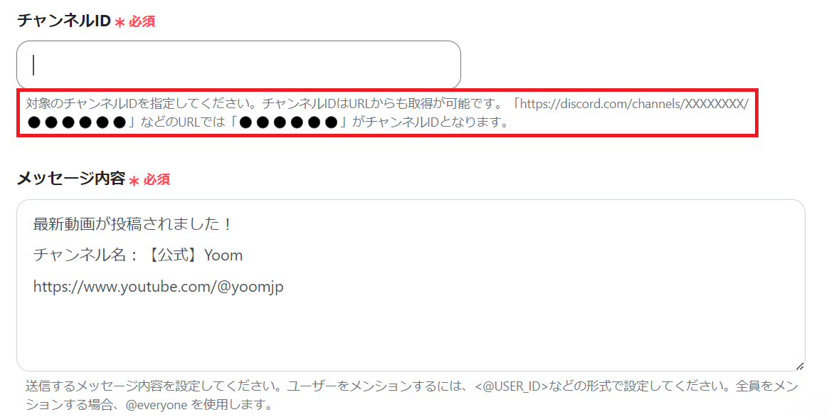 赤枠のとおりにチャンネルIDを入力しましょう。