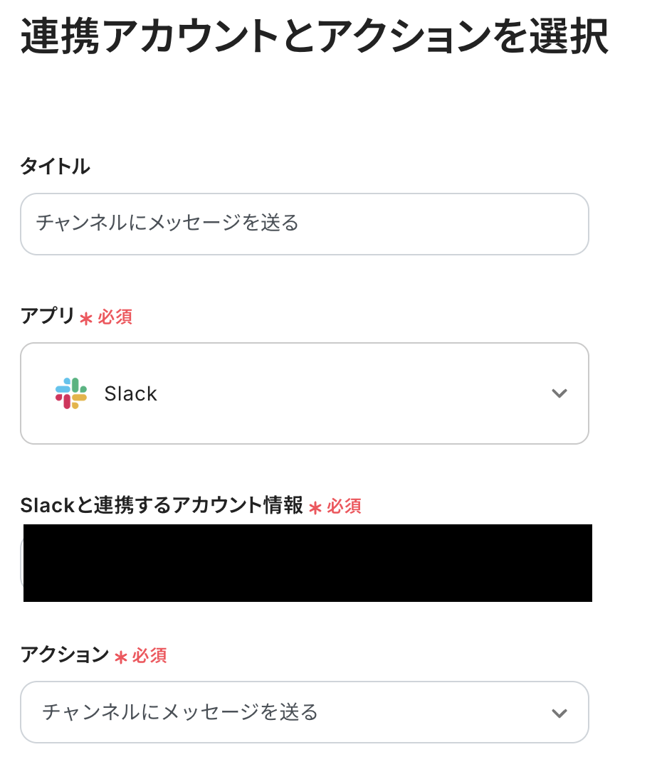 アクションは「チャンネルにメッセージを送る」が選択されていることを確認し、次へをクリックしてください。