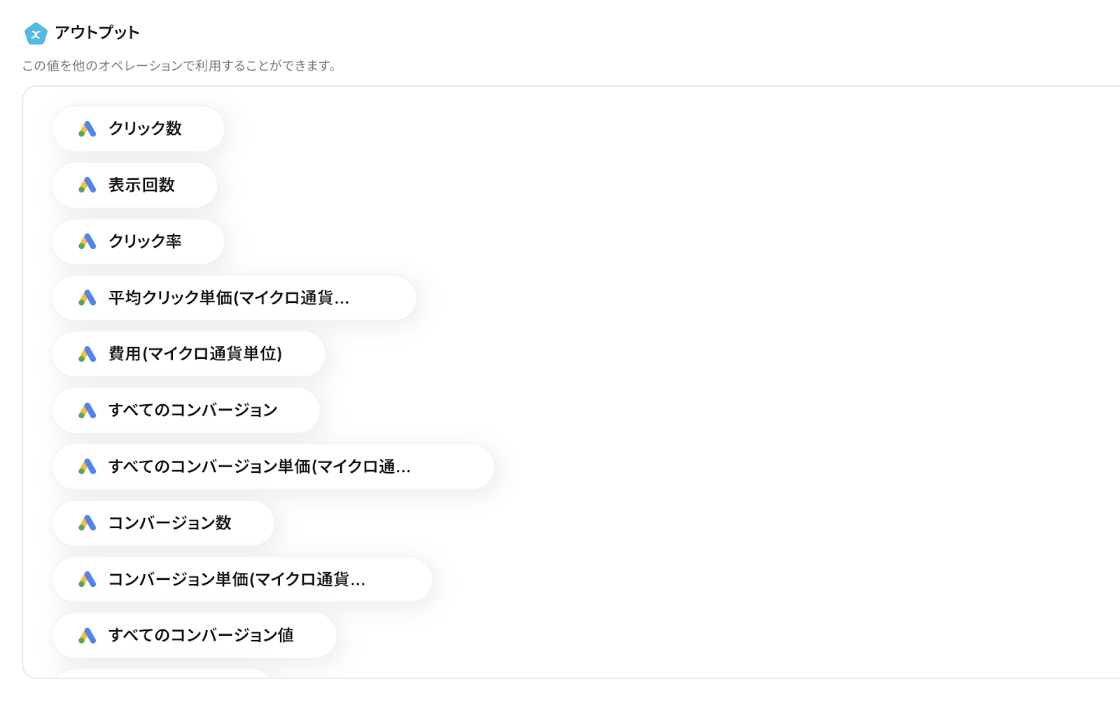 アウトプットを活用することで、都度値を手動で設定する必要がなくなります。