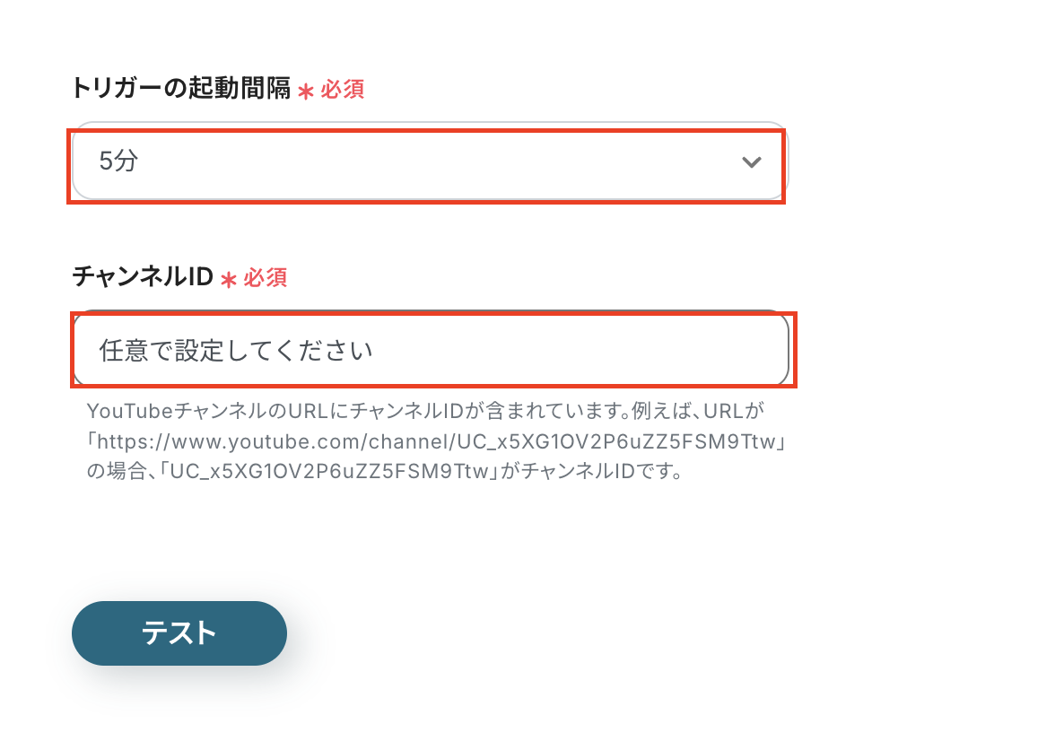 トリガーの起動間隔とは、設定した時間毎にトリガーとなるアクション(YouTubeチャンネルで最新の動画が公開されたら)が実行されているか確認する時間のことです。