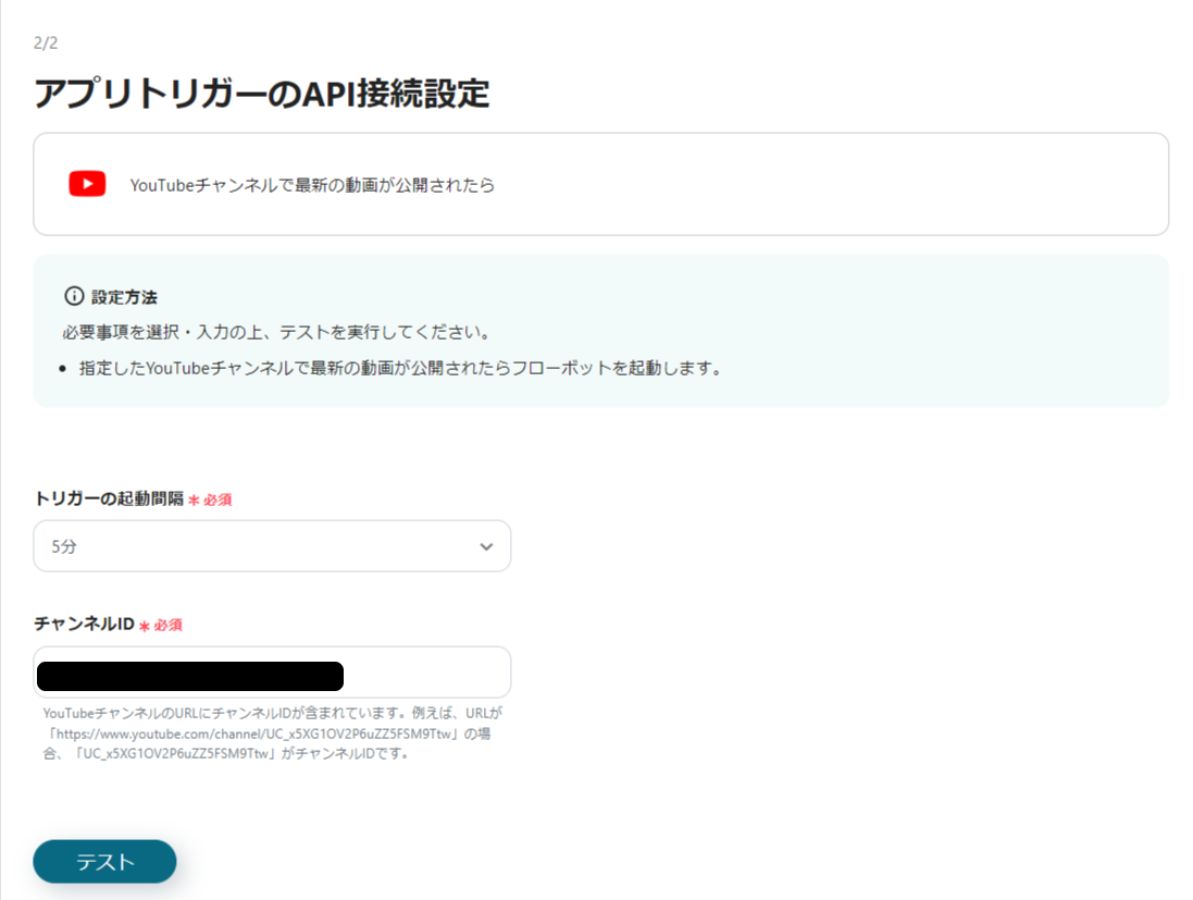 「何分おきに指定したチャンネルで動画公開がないかどうかを確認する」という設定なので、ご自身の運営チャンネルのペースに合わせて設定をしてください。