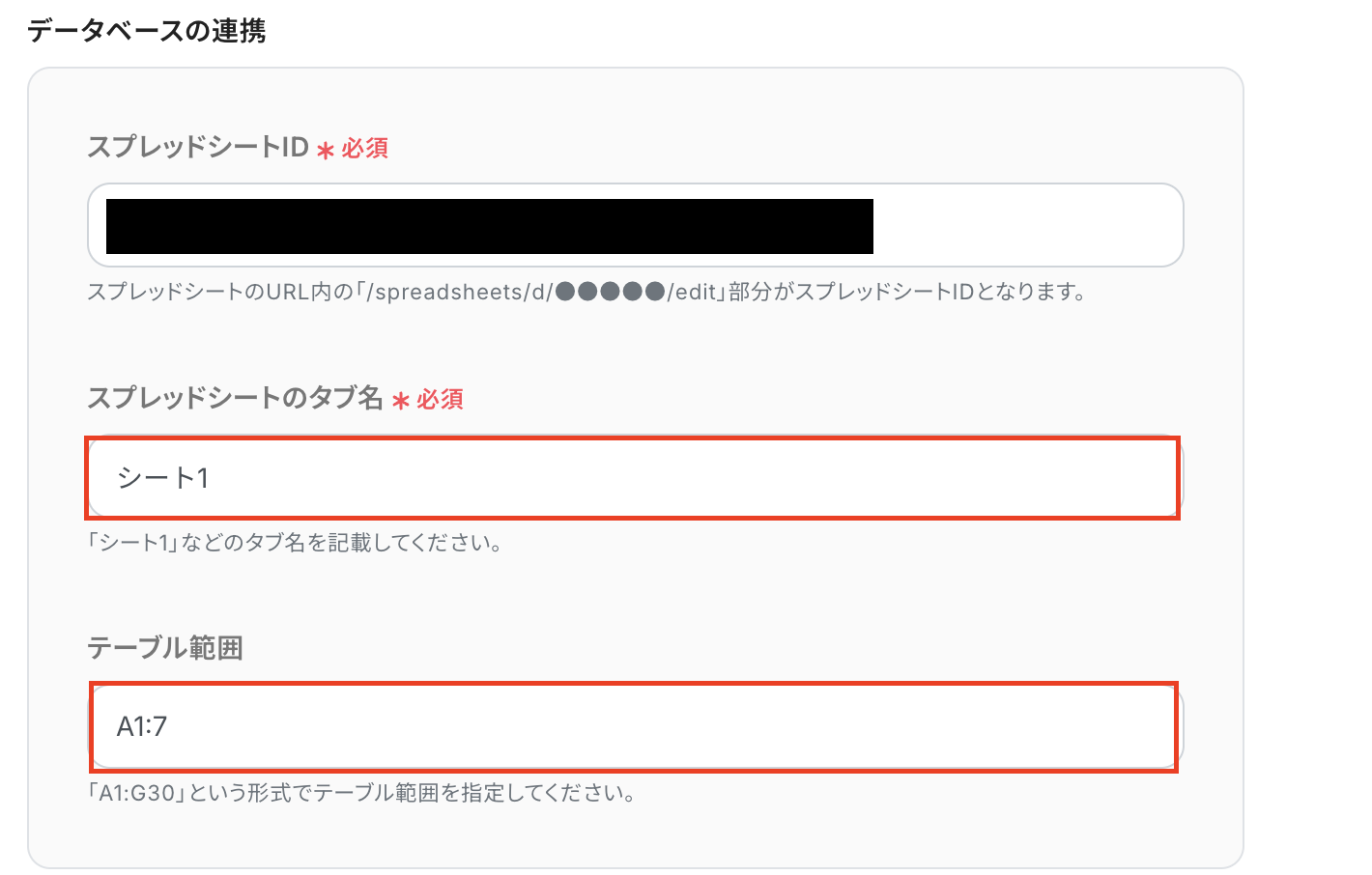 ・Googleスプレッドシートの追加先のシートやカラムの設定を任意の値に置き換えてご利用ください。
