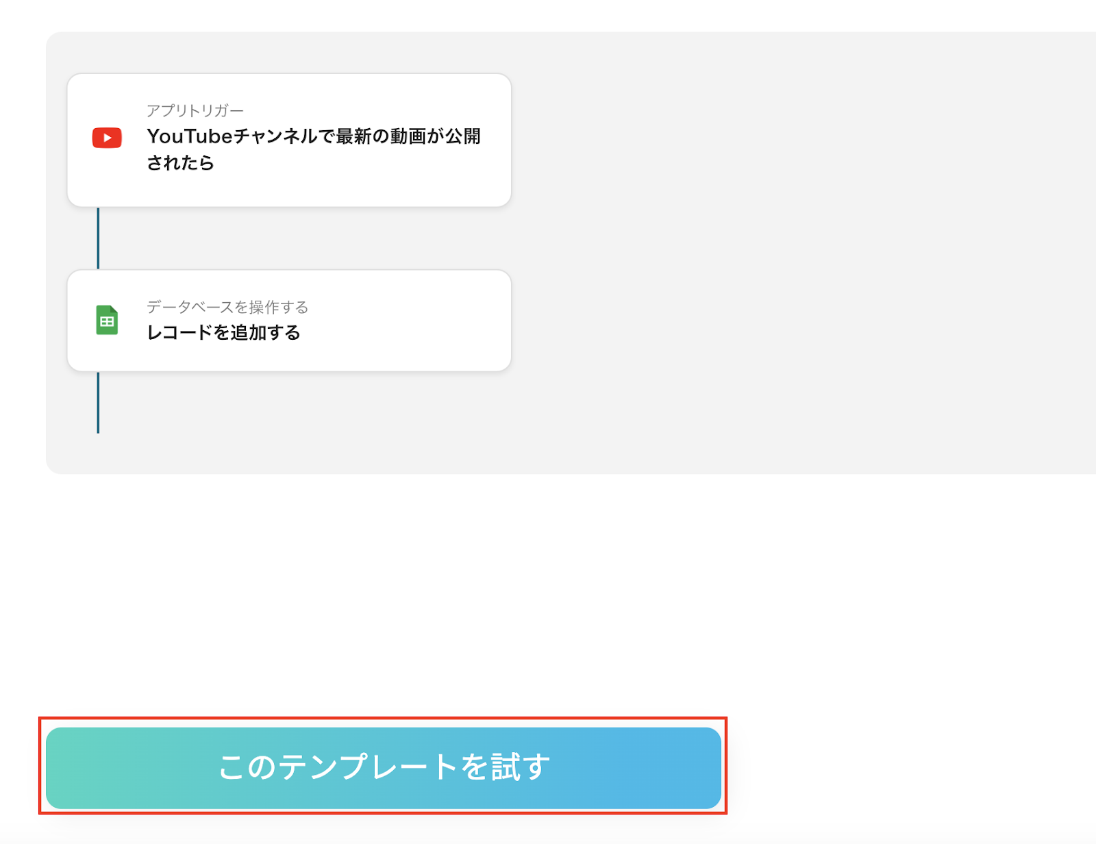 YoomにはあらかじめYouTubeとGoogle スプレッドシートを連携するためのテンプレートが用意されているため、APIの知識が無くても、登録するだけで今すぐ連携が実現できます。