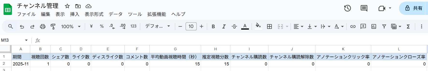 毎日、YouTubeでチャンネルレポートを取得してGoogle スプレッドシートにレコードを追加する