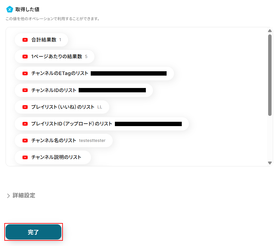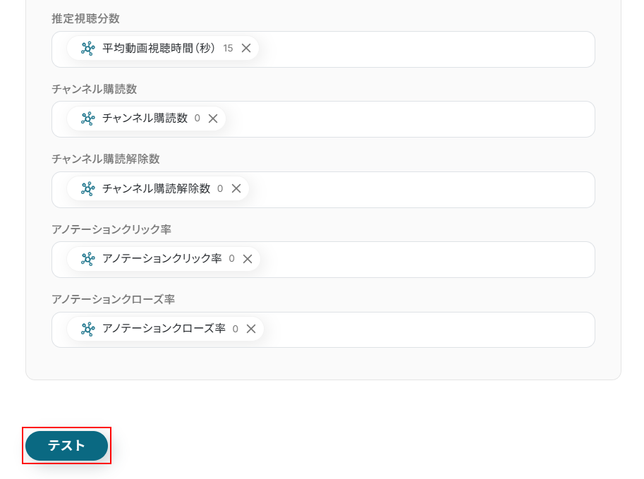 - YouTube Analytics APIでレポートを取得するアクションでは、対象のチャンネルIDやレポートを取得したい期間の開始日・終了日を任意で設定可能です。
