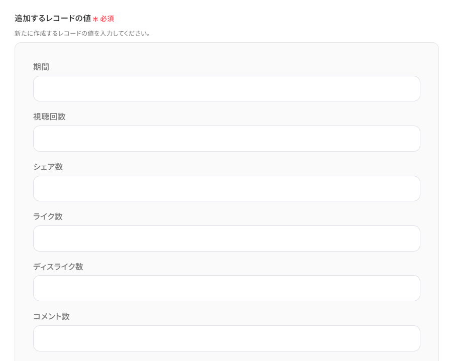 - SPIRALへのレコード作成をきっかけに、YouTubeチャンネルレポートの取得からSPIRALへの反映までを自動化できるため、手作業によるデータ収集や転記にかかる時間を削減できます。