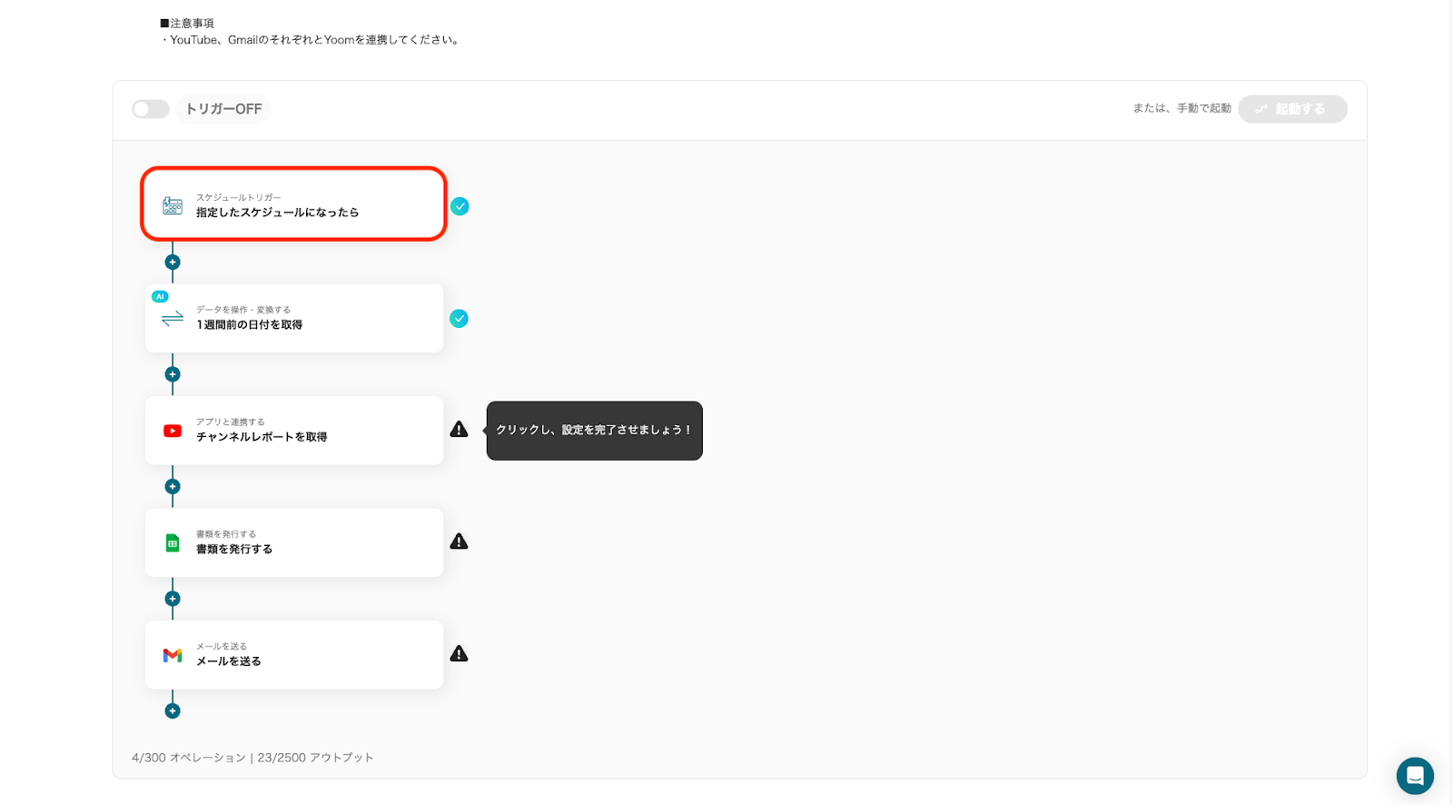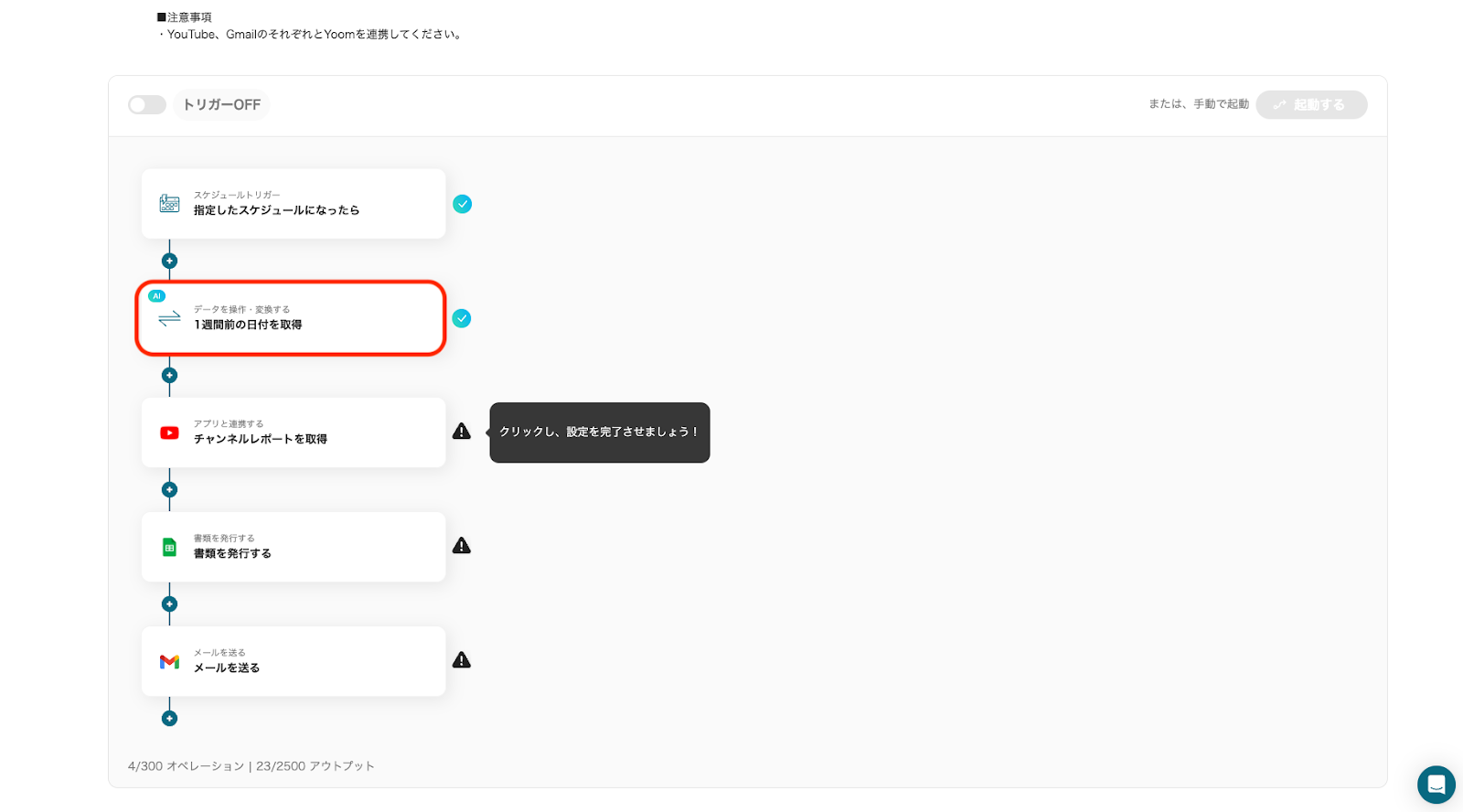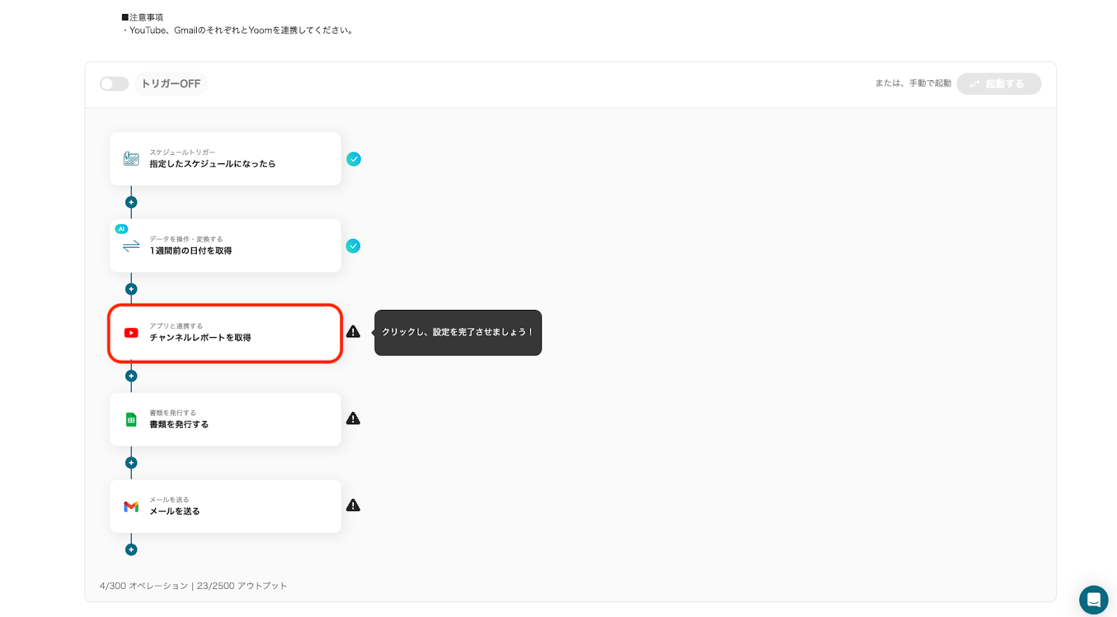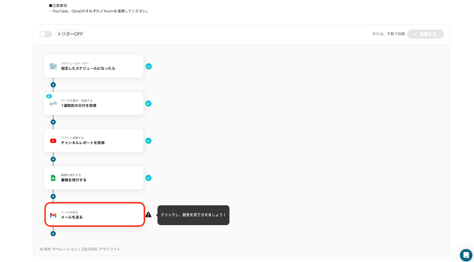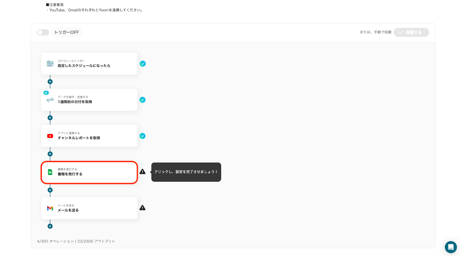 それではここからノーコードツールYoomを使って、YouTubeのレポートを取得し書類を自動作成してGmailで送信する方法をご説明します!