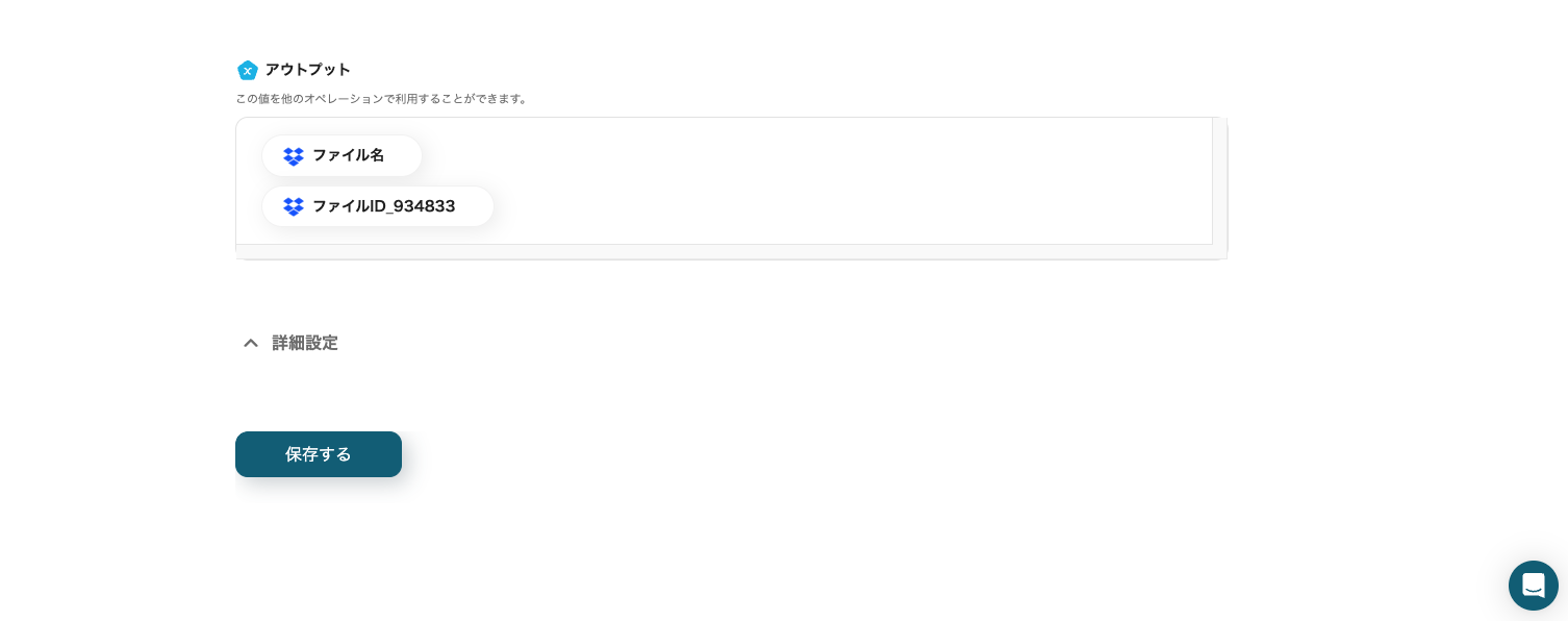 Dropboxとアウトプットを確認し、「保存する」をクリックしてください。