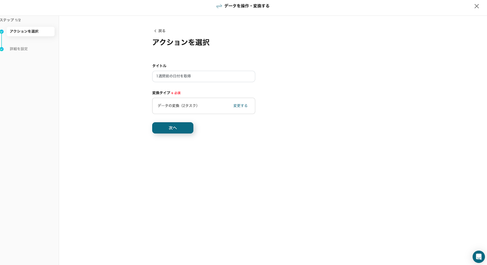 「変換タイプ」は、デフォルトで「データの変換(2タスク)」が選択されています。※()内のタスク消費量にご注意ください。