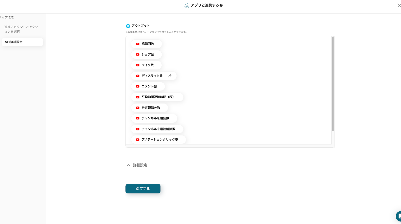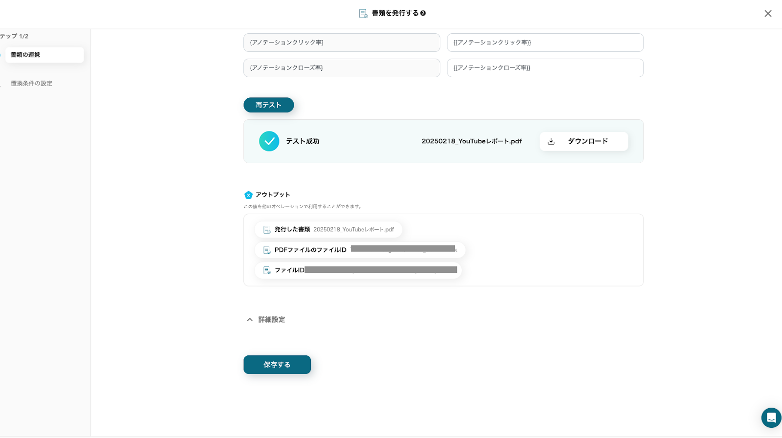 アウトプットとGoogle Driveを確認し、「保存する」をクリックしてください。