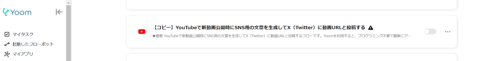 「【コピー】YouTubeで新動画公開時にSNS用の文章を生成してX(Twitter)に動画URLと投稿する」を選択しましょう。