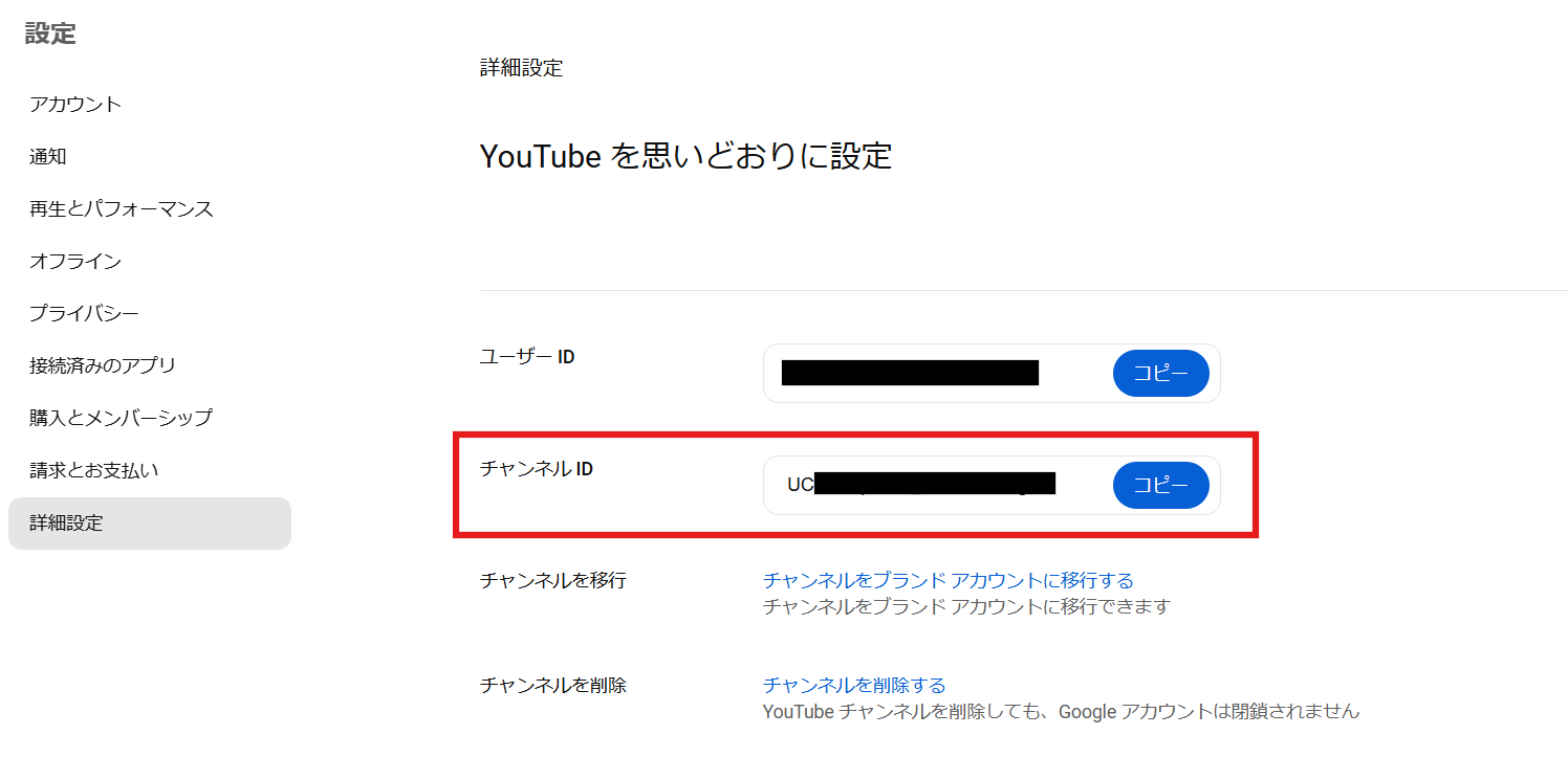もしくはYouTubeのチャンネル設定から取得することも可能です!