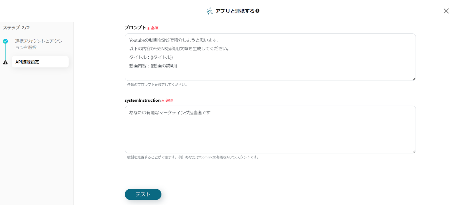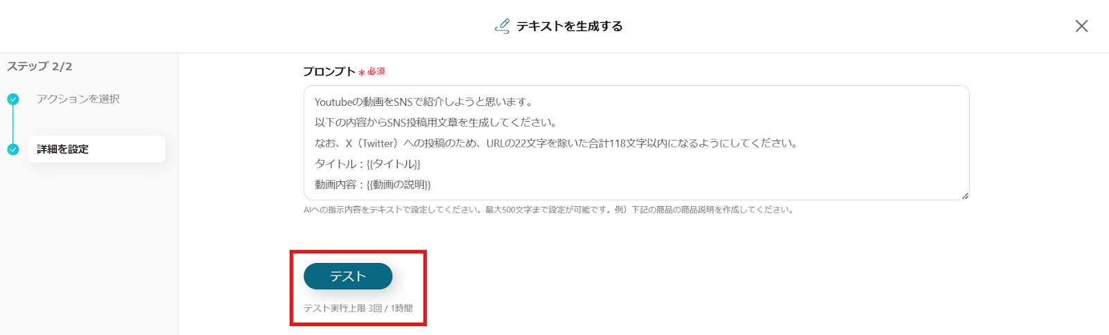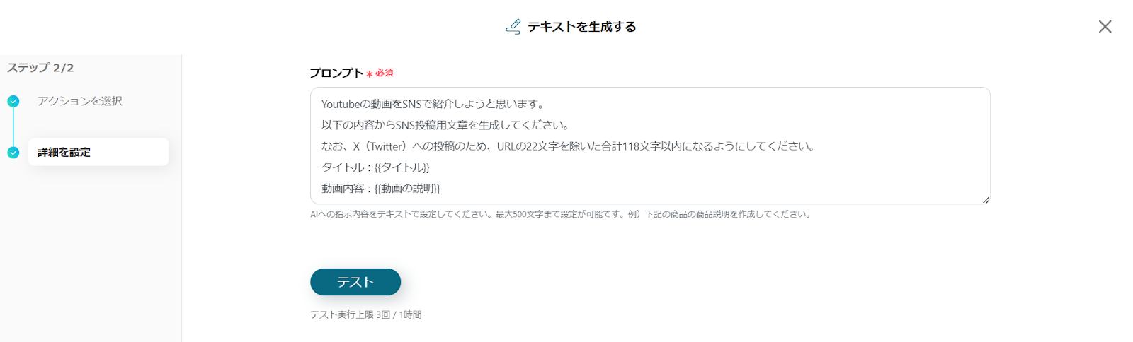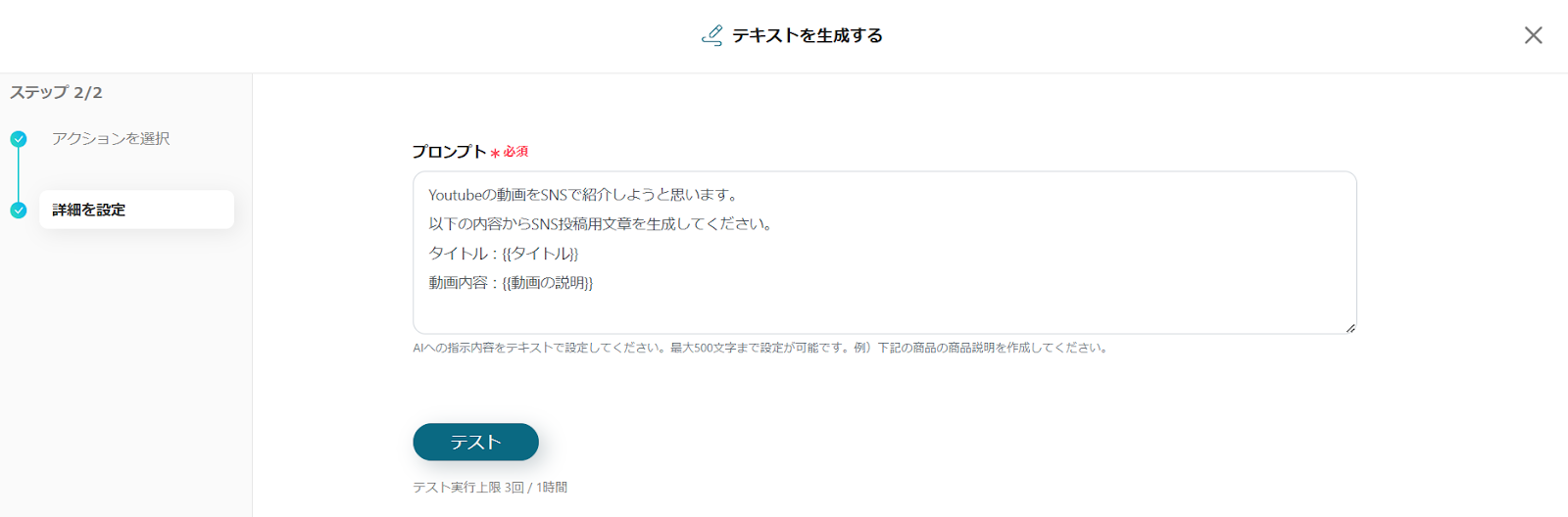 AIでテキストを生成する際に使用するプロンプトを設定します。