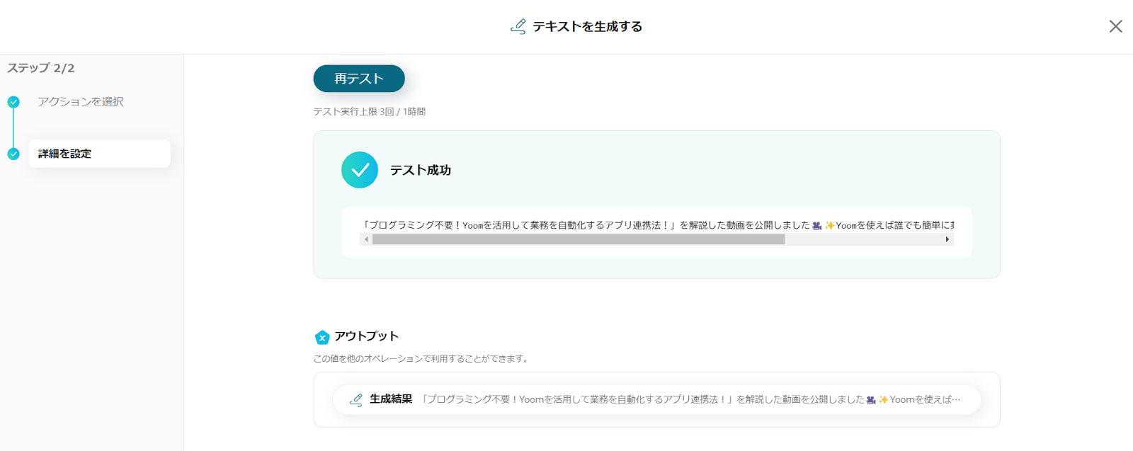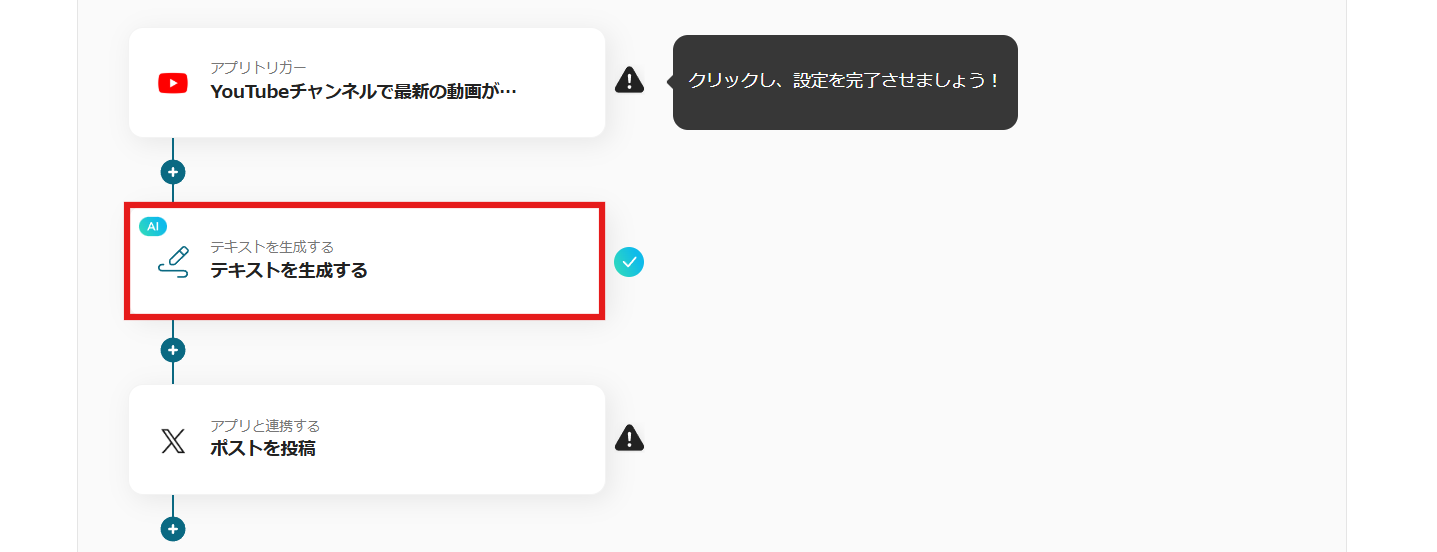 テンプレートをコピーしたら、冒頭で紹介した「YouTubeを起動し、AIで投稿用のテキストを生成する設定」まで設定方法は同じとなります。