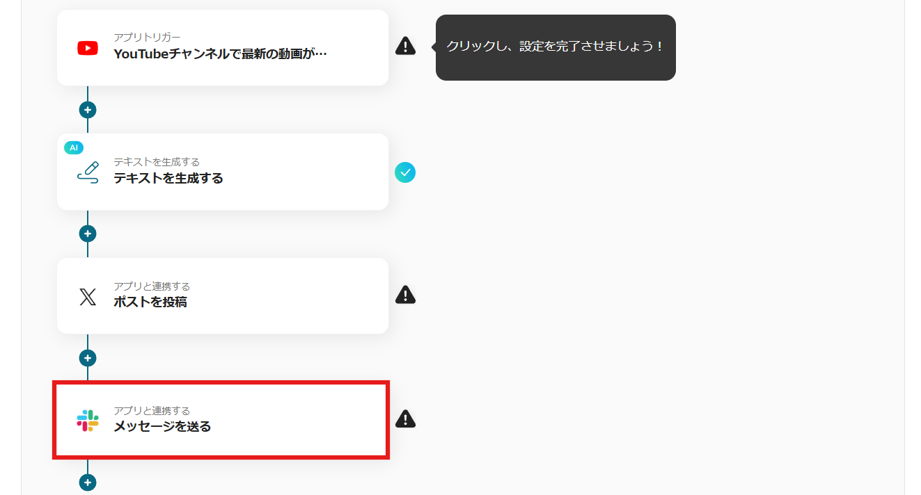 こちらは最後にSlackへ通知するアクションを加えたフローです。