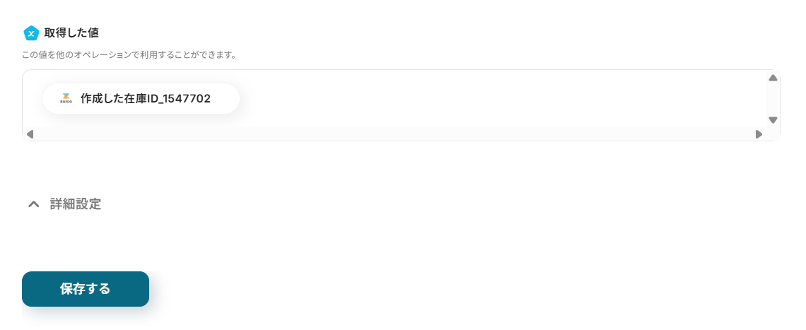 最後に、Notionにzaicoから取得した在庫IDを登録する設定を行います。