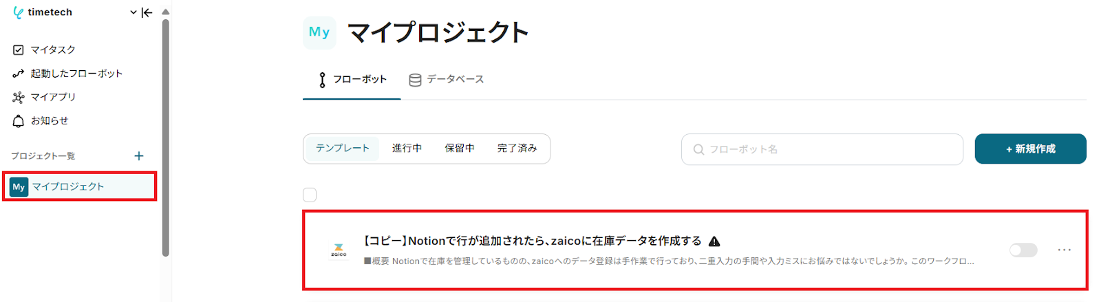 今回は「Notionで行が追加されたら、zaicoに在庫データを作成する」という実際のフローボットも作成していきます!