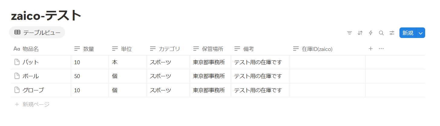 テストが成功すると、Notionに在庫IDが反映されるので確認してください。