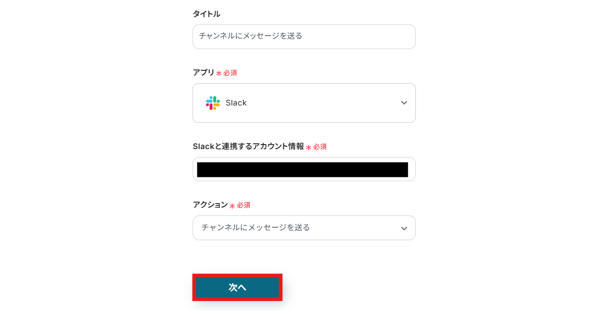 アクションは「チャンネルにメッセージを送る」を選択しましょう。