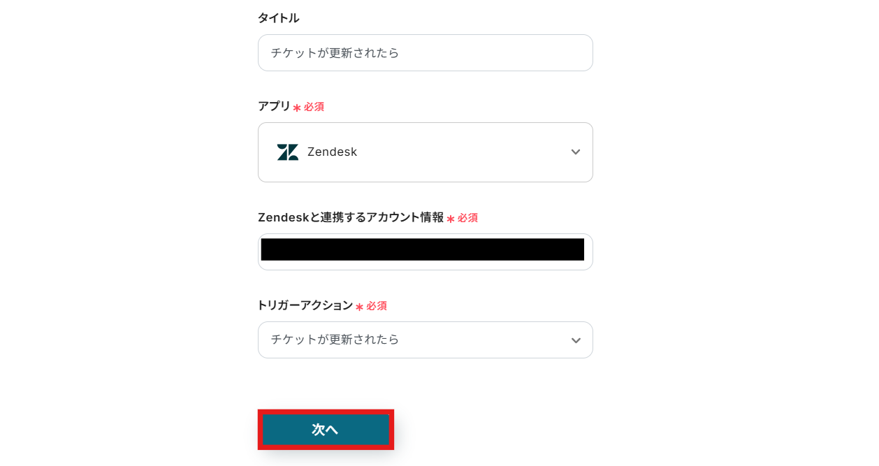 ステップ3:Zendeskのチケットが更新されたら起動するトリガーの設定