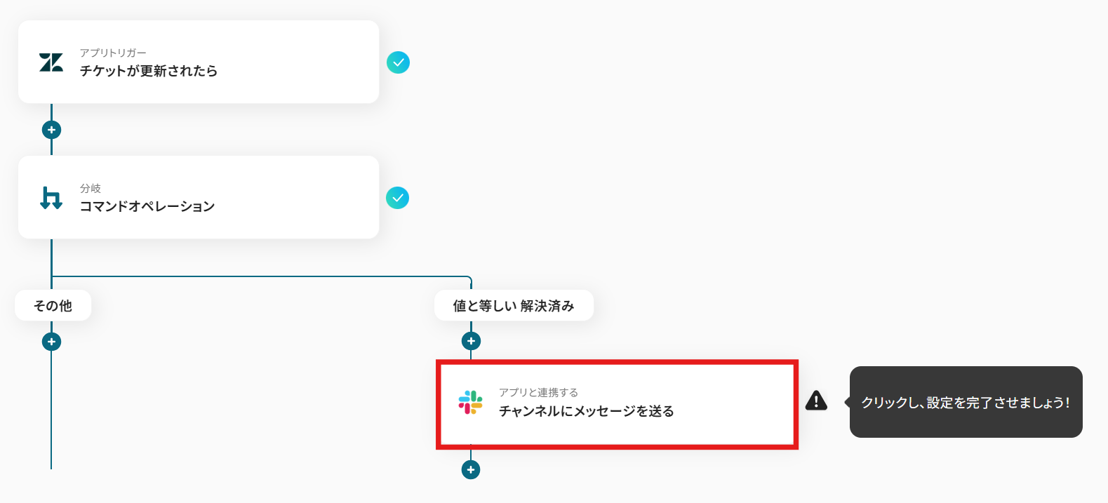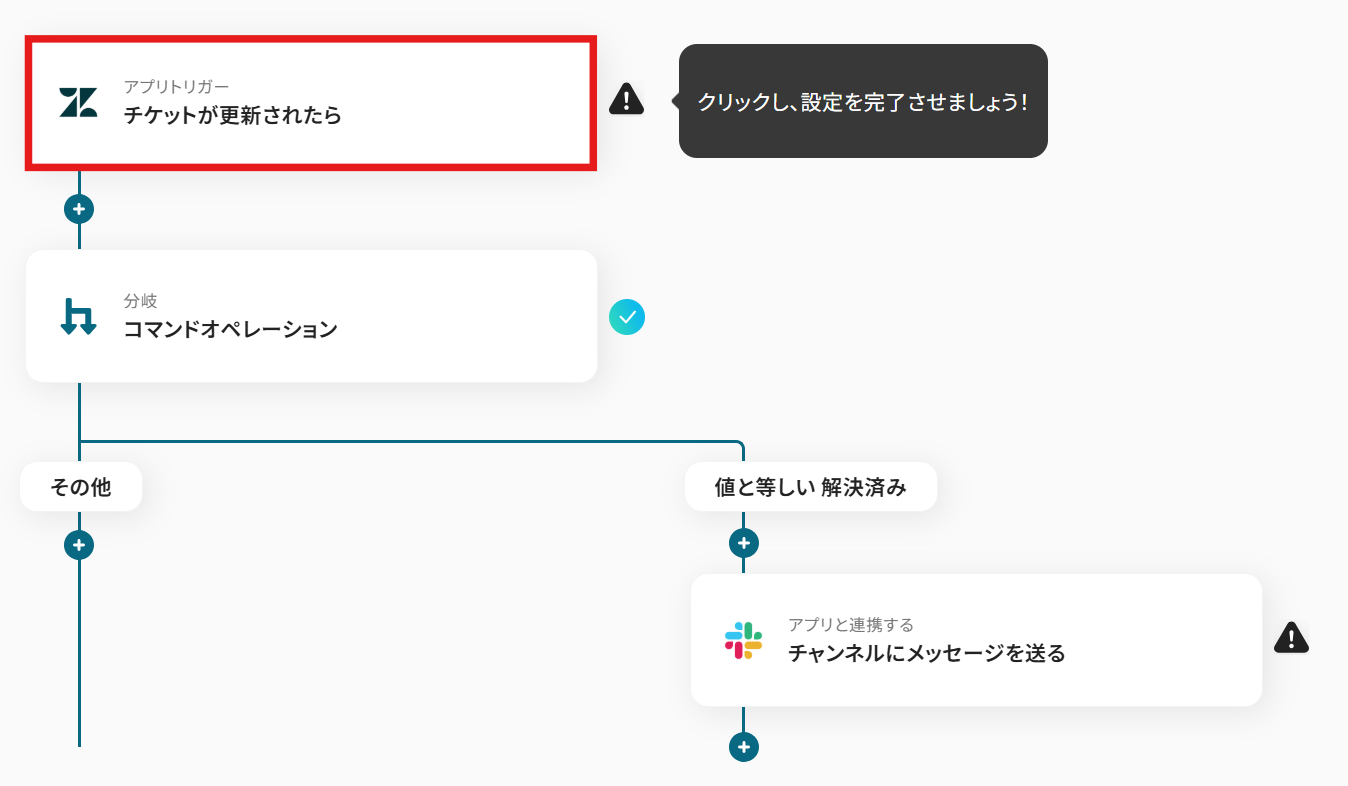 「Zendeskでチケットが更新されたらSlackに通知する」フローは、サポートチームのコミュニケーションを円滑にする業務ワークフローです。