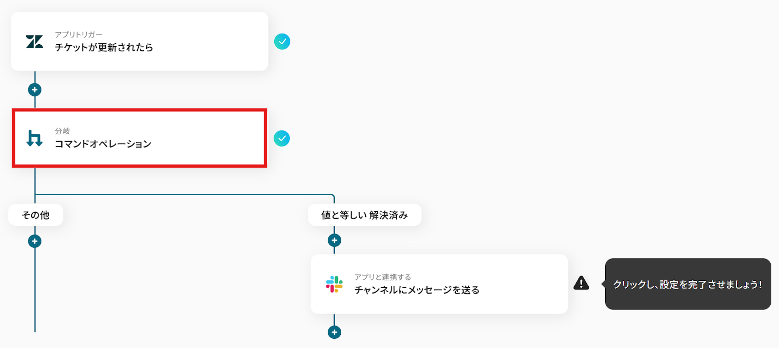 デフォルトではステータスが「解決済み」になったら、フローが進むように設定されています。