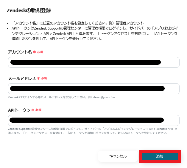 「追加」をクリックすると、Zendeskのマイアプリ登録は完了です。