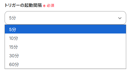 - トリガーの起動タイミングは、5分、10分、15分、30分、60分のいずれかで設定できます。