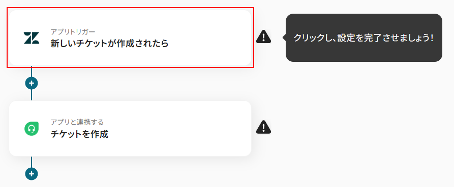 ステップ3:Zendeskの新しいチケットが作成された際の設定