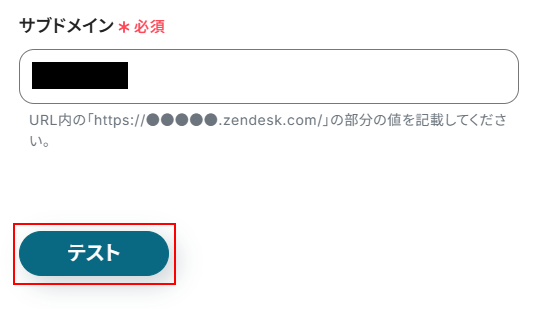 Zendeskの画面からURLをコピーし、注釈を確認しながらサブドメインとなる部分を抜き出し入力します。