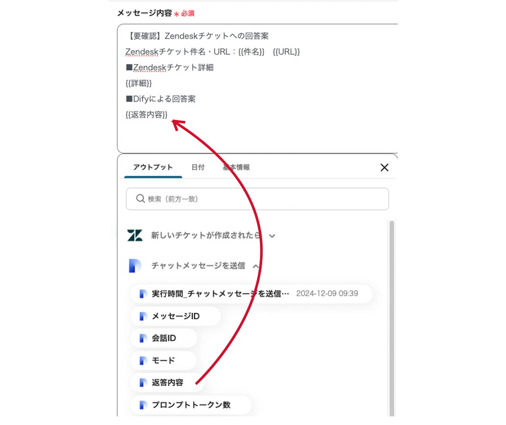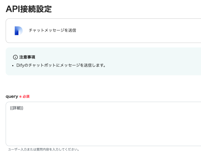こちらではDifyに送信するプロンプト(指示文)の設定を行います。