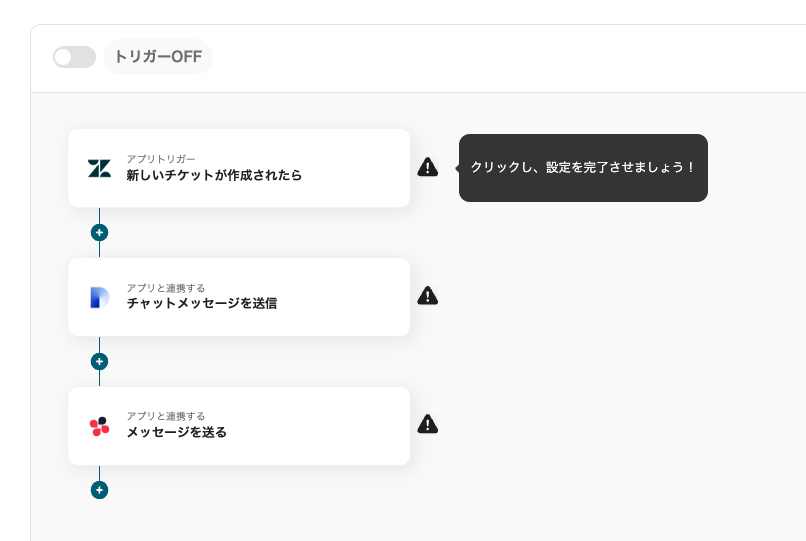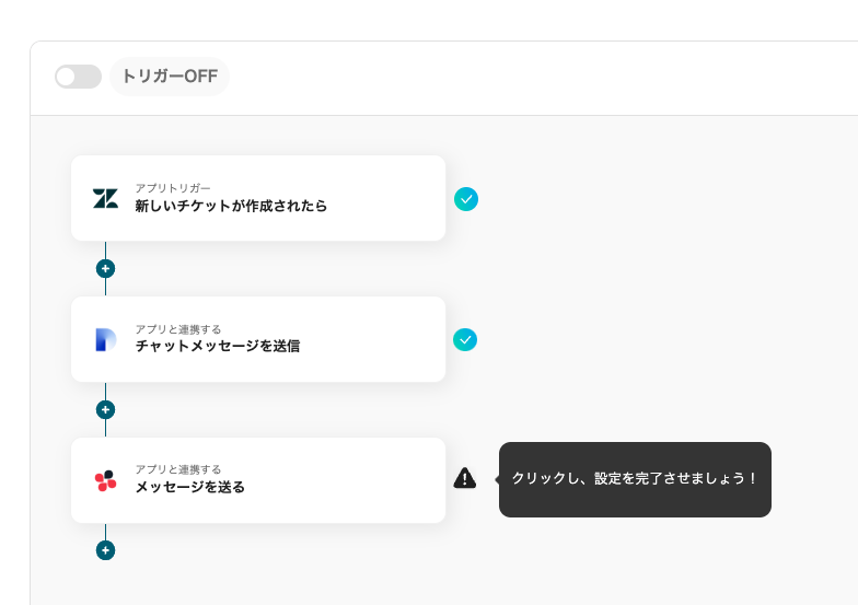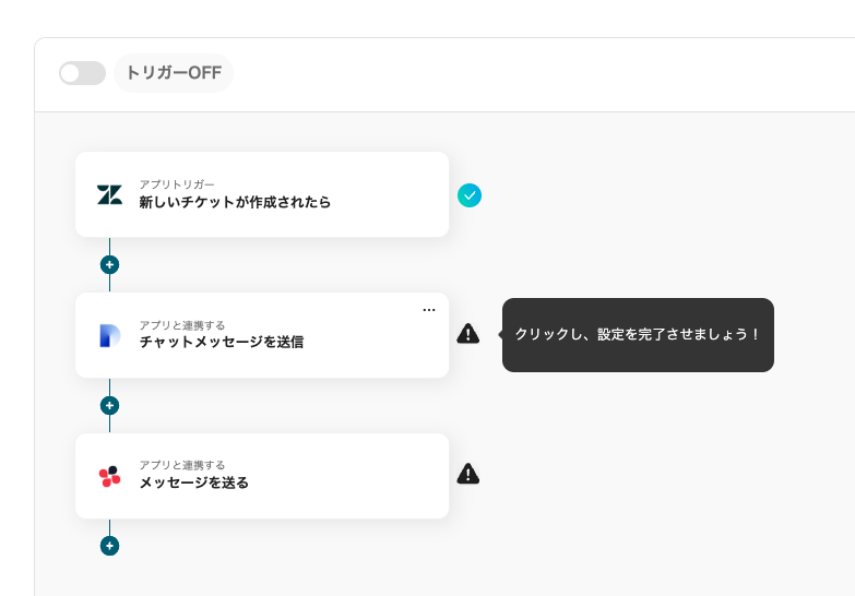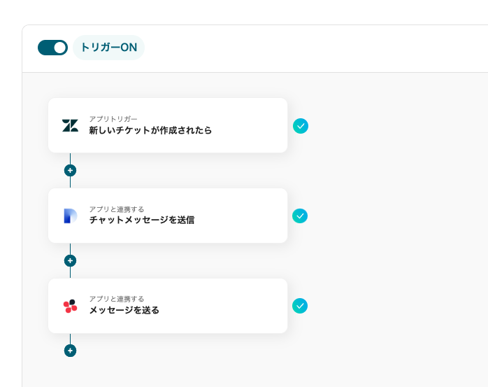 ※Zendeskはチームプラン・サクセスプラン限定アプリです。現在、Zendeskのアプリは「チームプラン」または「サクセスプラン」でのみご利用いただけます。「フリープラン」や「ミニプラン」をご利用中の場合、設定されたフローボットのオペレーションやデータコネクトがエラーが発生することがありますので、ご注意ください。