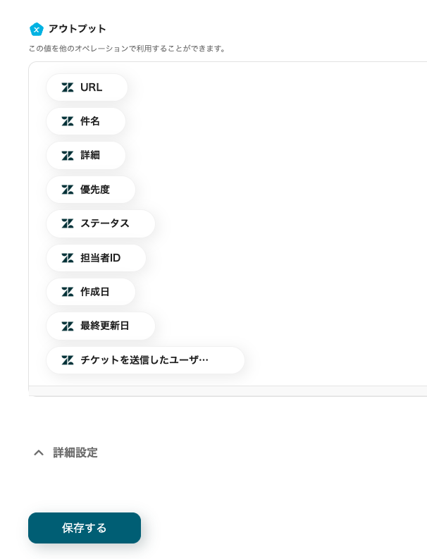 こちらでは、Zendeskで発行されたチケット情報を取得する設定を行います。