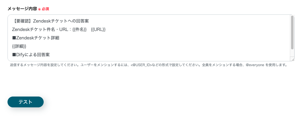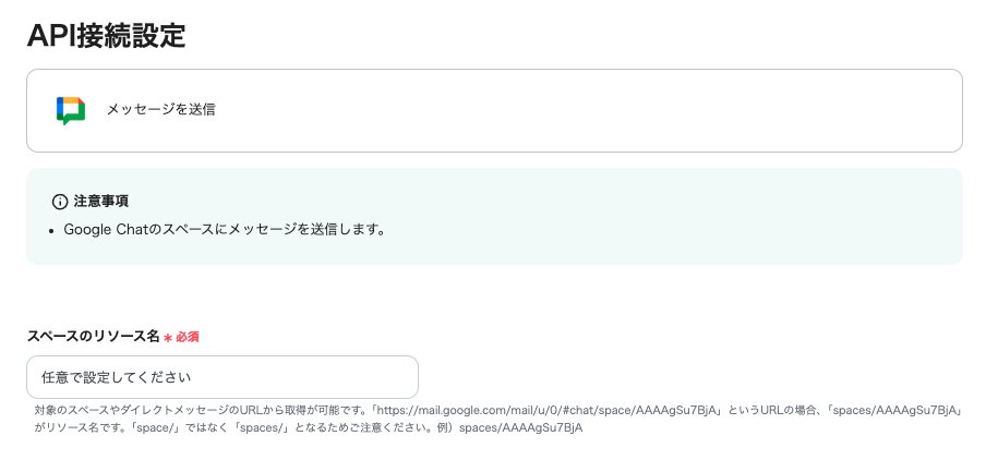 こちらではGoogle Chatに通知する定型文の設定を行います。